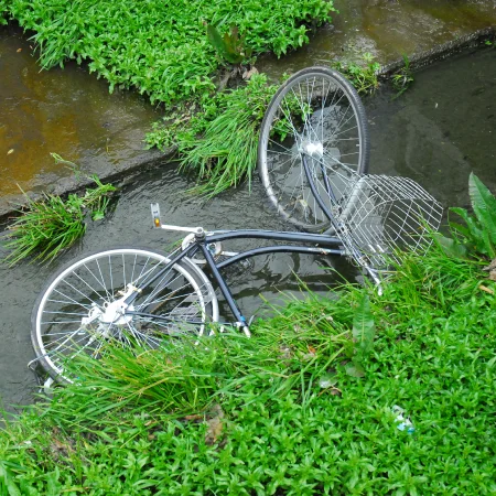 用排水路や調整池にゴミを捨てると通水障害が起こります。